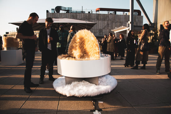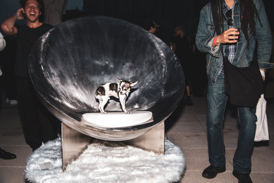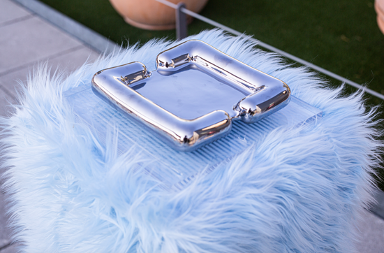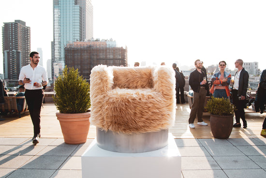 Standout items from the Bundle Collection include the Dose Table, a pill-shaped coffee table with a hidden fuzzy interior cavity for storing your vices; the Thong Chair, a handmade, bulbous steel piece with a distinctive and gaudy thong design; the Hairy Neo-Lounge Chair, a Space Age–inspired seat covered with a furry exterior; and the Hug Ashtray, a hand-poured ceramic piece with a unique electroplated finish inspired by New York’s untethered nightlife.