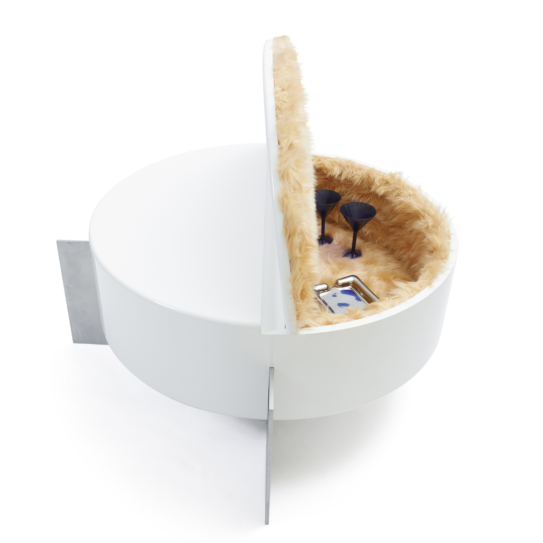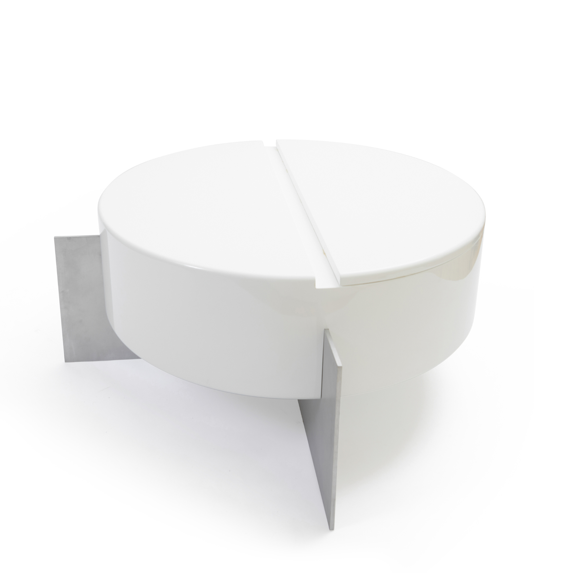 Inspired by the New York City nightlife scene, the Dose Table is an indulgent coffee table made with FSC-certified wood, lacquer, and recycled aluminum legs. Artfully crafted, this pill-shaped piece features a hidden interior cavity to store your vices. Make this exquisite piece the centerpiece of your living space.